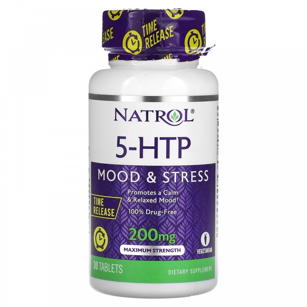 Natrol, 5-HTP, медленное высвобождение, максимальная сила, 200 мг, 30 таблеток