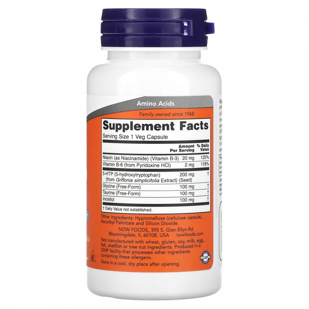 Этот продукт двойной силы от компании Now содержит в 2 раза больше 5-гидрокситриптофана (200 мг на капсулу), чем продукт с обычной силой действия (100 мг на капсулу).