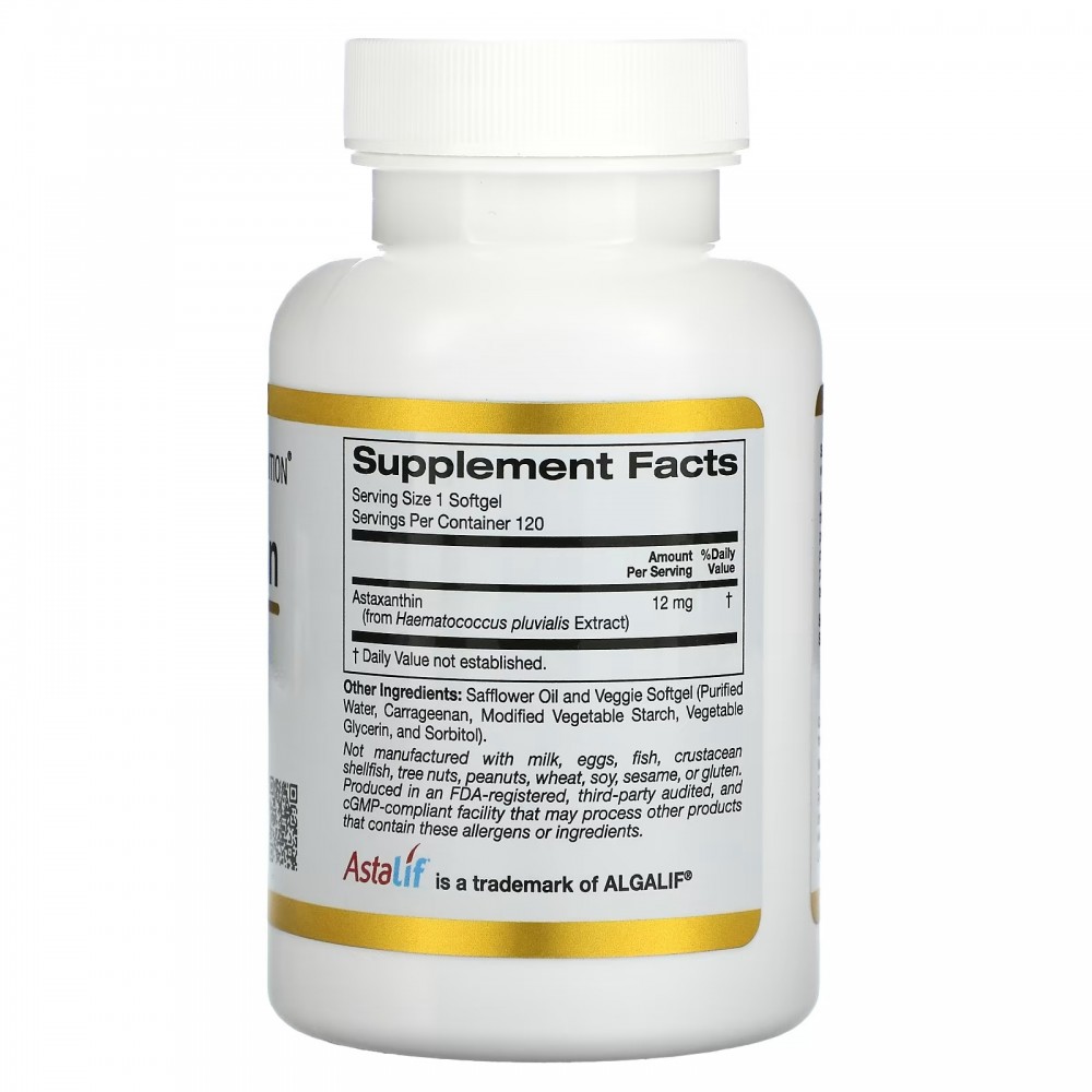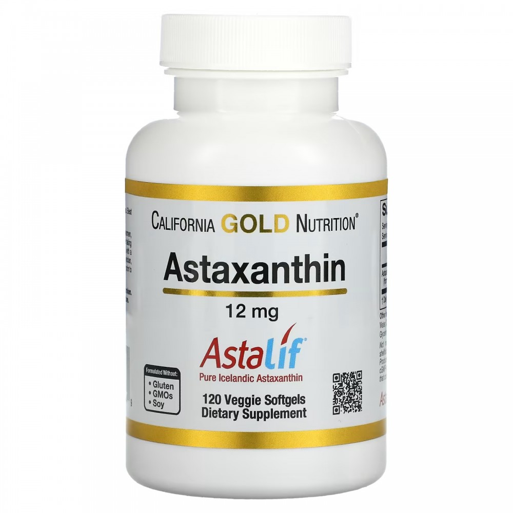 California Gold Nutrition, Astalif, чистый исландский астаксантин, 12 мг, 120 растительных капсул