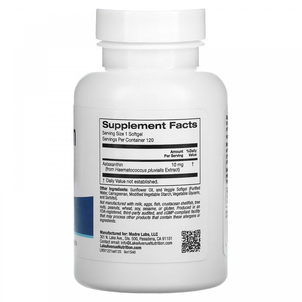 Lake Avenue Nutrition, астаксантин, 10 мг, 120 вегетарианских капсул