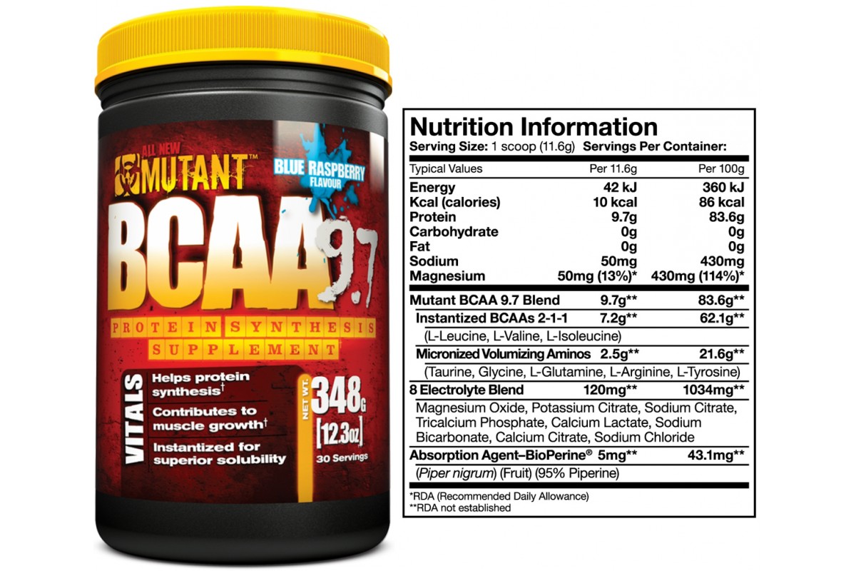 Основой Mutant BCAA 9.7 являются аминокислоты ВСАА, которые не вырабатываются организмом и должны поступать к нам с пищей. В отличие от многих других аминокислот, перерабатывающихся в печени, ВСАА предоставляют энергию конкретно мышцам, являясь их топливом. Около 35% мышц состоят из ВСАА, и во время физических нагрузок их запас особо истощается, следовательно, его нужно восполнять. К тому же около четверти всей энергии, расходующейся во время тренировки, берется из ВСАА. В связи с этим данные аминокислоты крайне важны для роста мышечной массы и восстановления тканей мышц после тренировок.