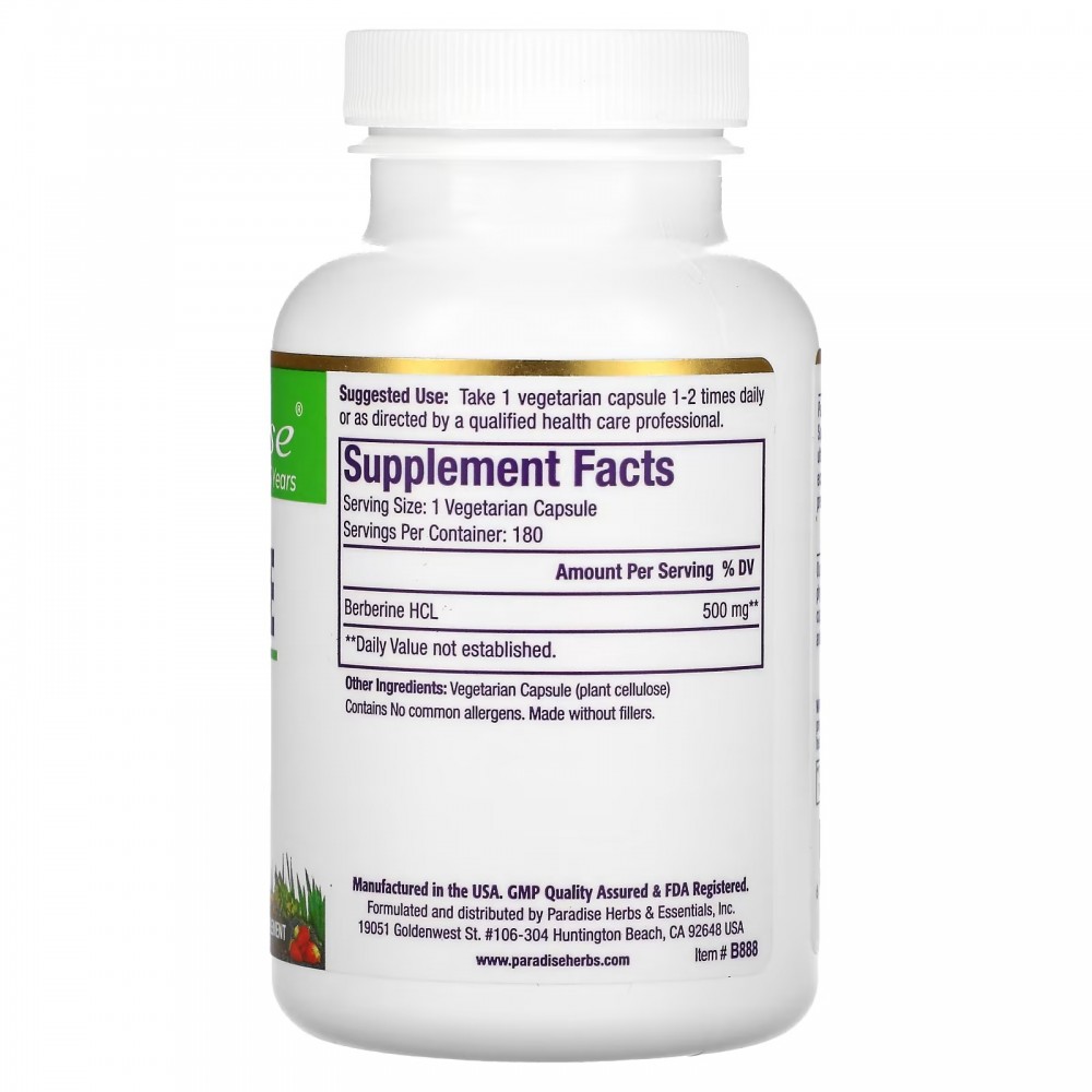 Paradise Herbs, берберин, 180 вегетарианских капсул