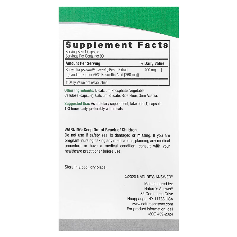 Nature's Answer, босвеллия, 400 мг, 90 вегетарианских капсул