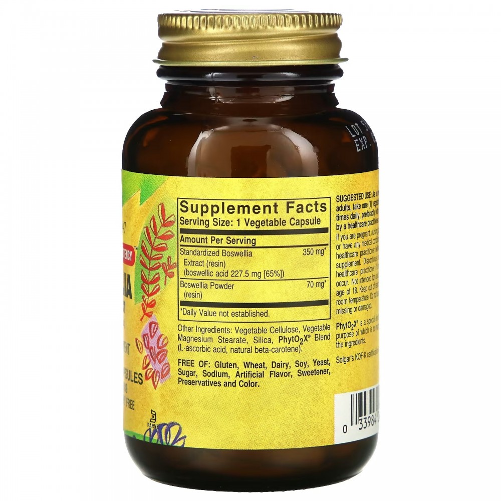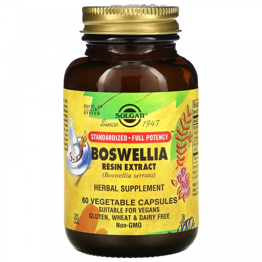 Solgar, экстракт смолы босвеллии, 60 вегетарианских капсул