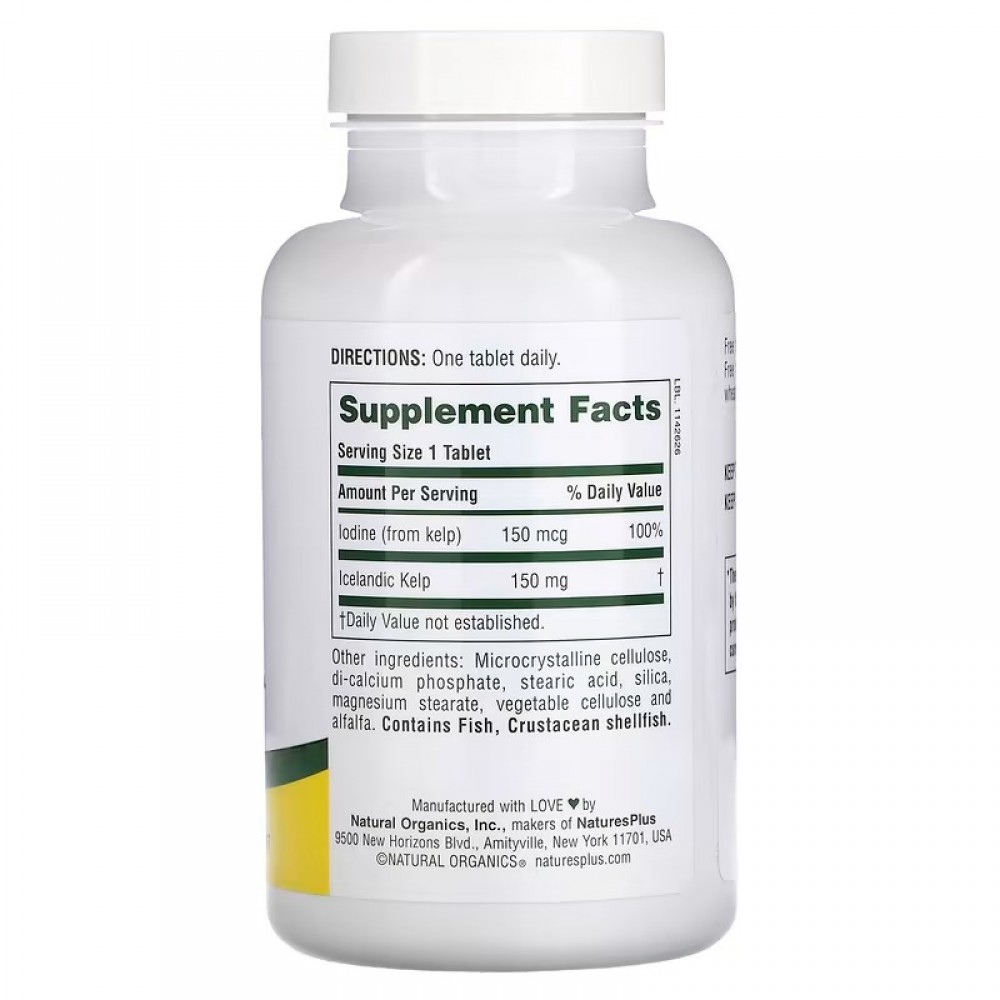 | Йод (из бурых водорослей) | 150 мкг | 100% |