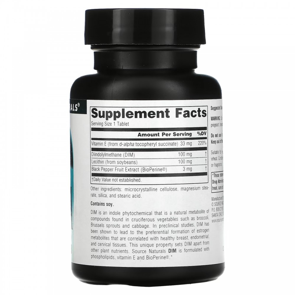 DIM представляет собой фитохимический индол, который является естественным метаболитом соединений, содержащихся в крестоцветных овощах, таких как брокколи, брюссельская капуста и кочанная капуста. В ходе доклинических исследований было показано, что DIM приводит к преимущественному образованию метаболитов эстрогена, которые коррелируют со здоровыми тканями груди, эндометрия и шейки матки. Это уникальное свойство отличает DIM от других растительных питательных веществ. DIM от Source Naturals содержит фосфолипиды, витамин E и BioPerine®.