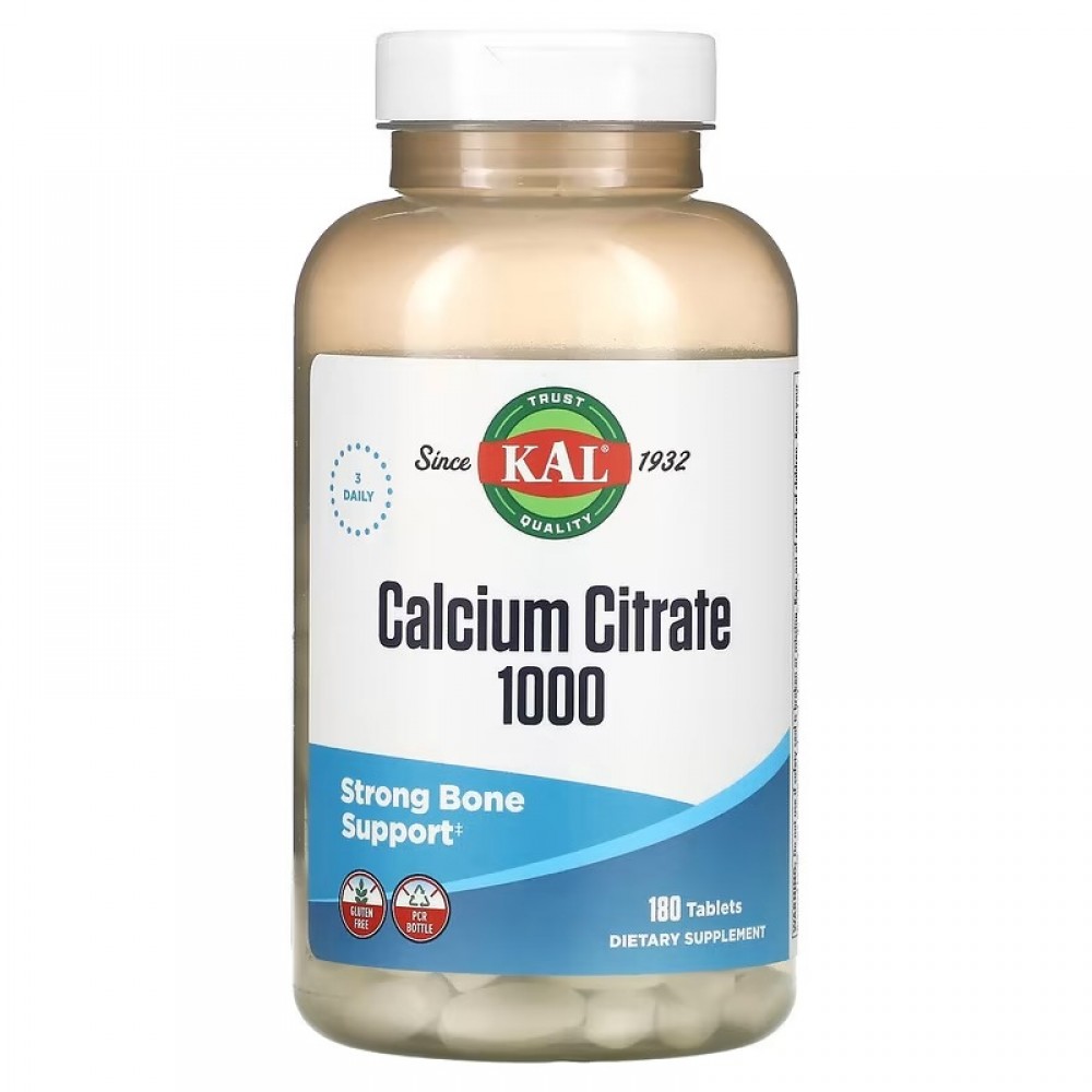 Описание. Каждая порция цитрата кальция 1000 от KAL® обеспечивает поступление кальция высокой эффективности. Кальций обеспечивает питательную поддержку здоровья костей и зубов.