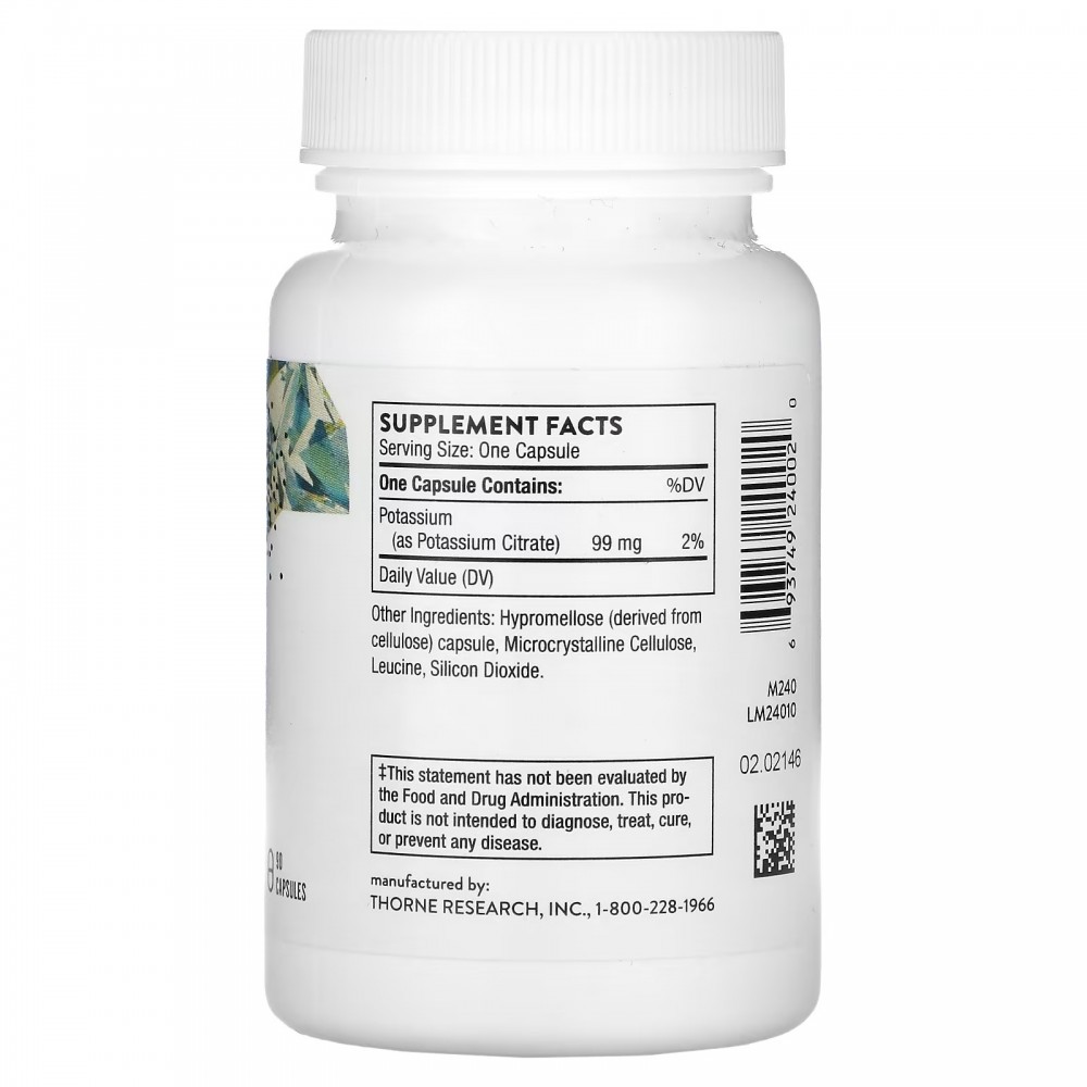 Хронический дефицит калия может привести к различным неблагоприятным последствиям для здоровья, включая длительное чувство слабости и усталости. Цитрат калия от Thorne способствует здоровью сердечно-сосудистой системы, а также поддерживает здоровье почек и нижних отделов мочевыводящих путей, предотвращая выпадение осадка в моче из-за его защелачивающего действия. Цитрат калия подщелачивает мочу, а также подавляет рост нежелательных бактерий в мочевыводящих путях.
