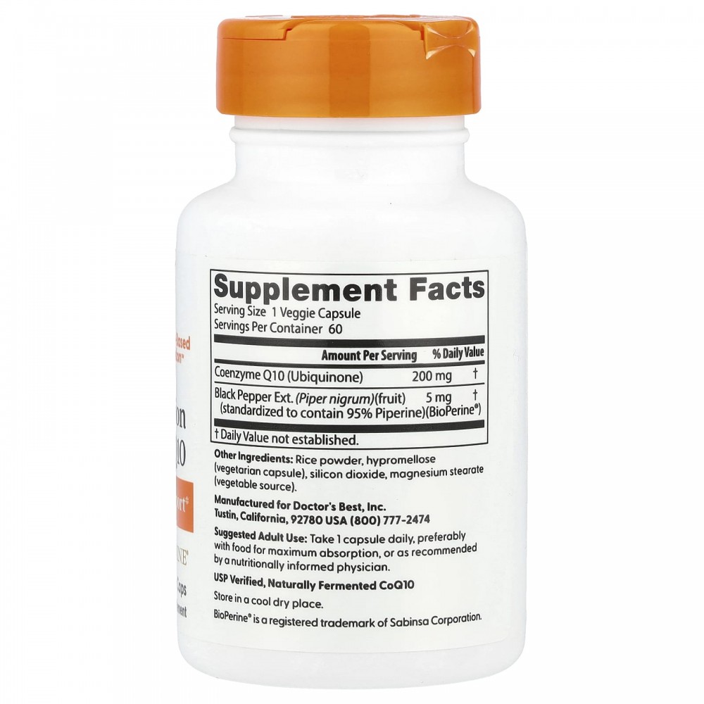 Doctor's Best, высокоусвояемый коэнзим Q10 с биоперином, 200 мг, 60 растительных капсул