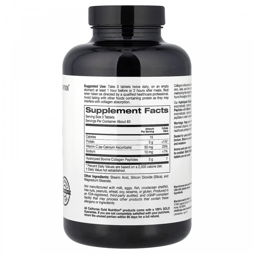 California Gold Nutrition, гидролизованные пептиды коллагена с витамином C, тип 1 и 3, 250 таблеток