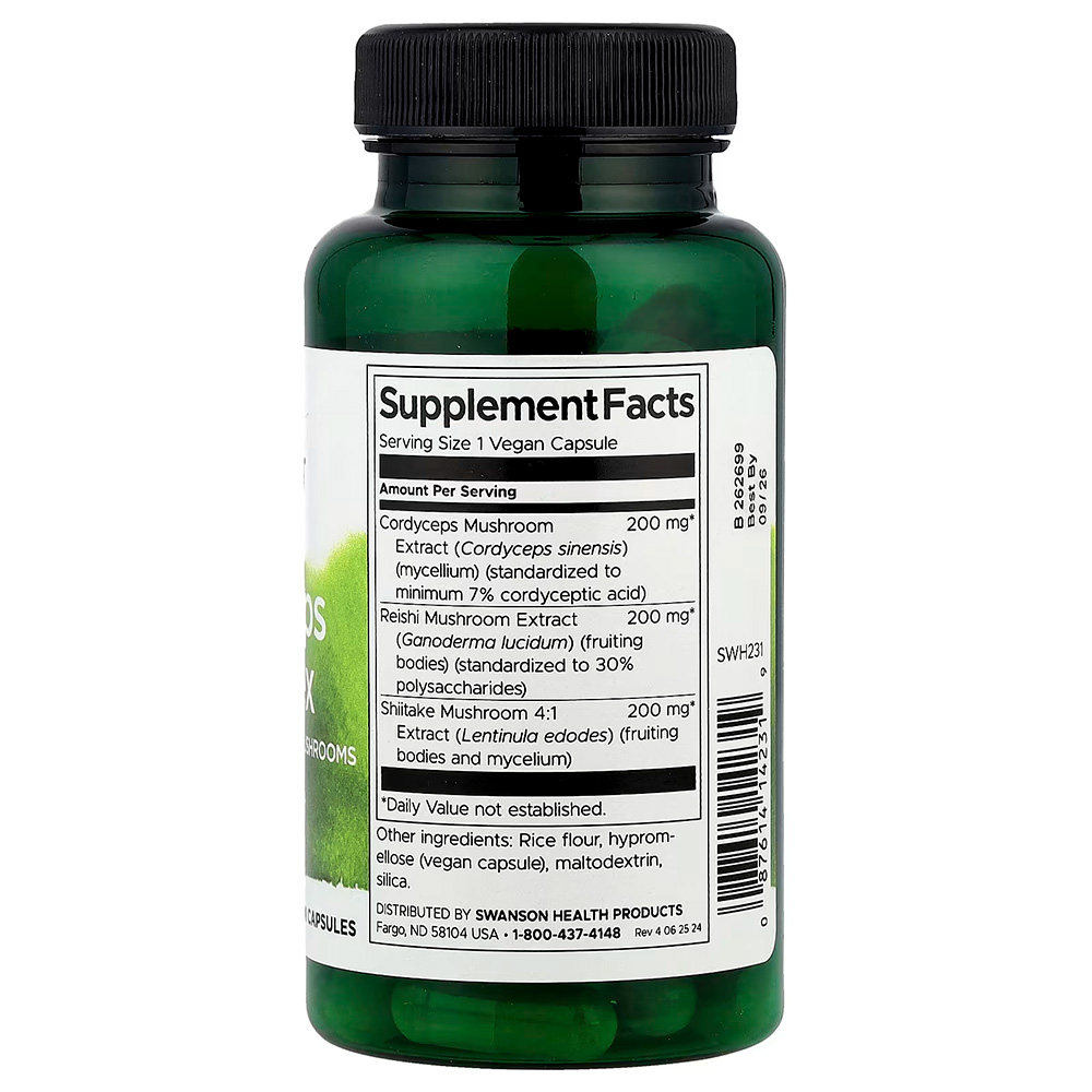 Swanson, Комплекс кордицепса с грибами рейши и шиитаке, 60 веганских капсул