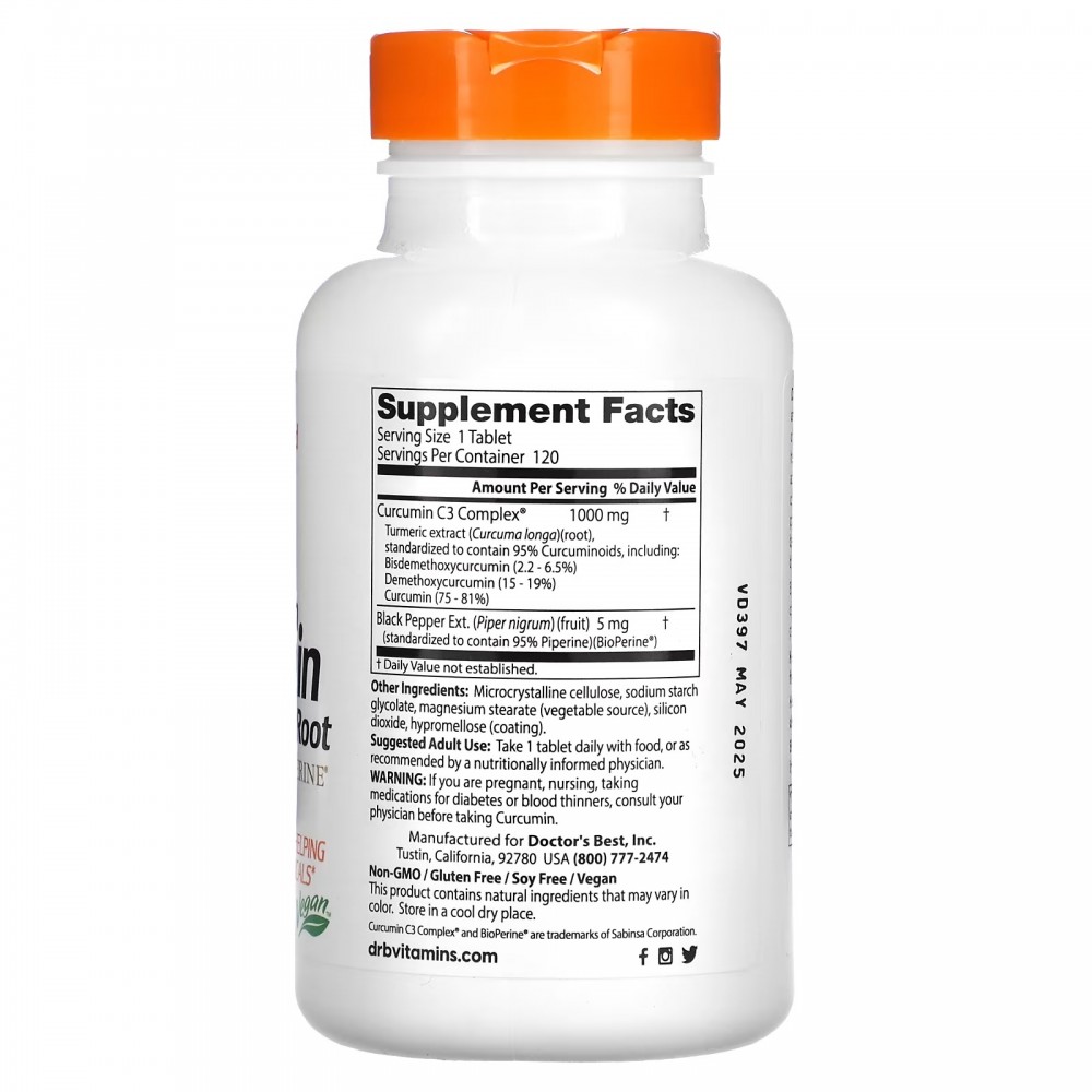 Doctor's Best, легкоусвояемый куркумин, 1000 мг, 120 таблеток