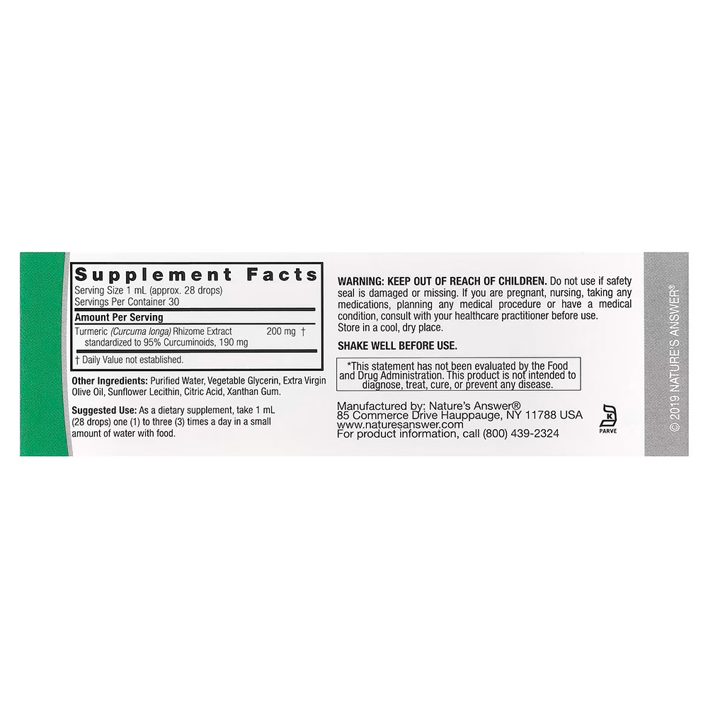 Nature's Answer, Turmeric-3®, без спирта, 200 мг, 30 мл (1 жидк. Унция)