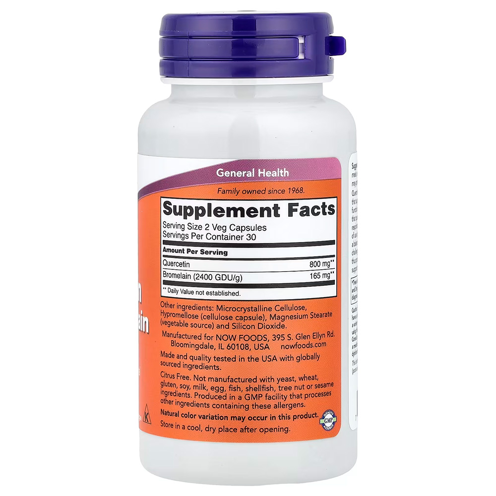 NOW Foods, кверцетин с бромелаином, 60 растительных капсул