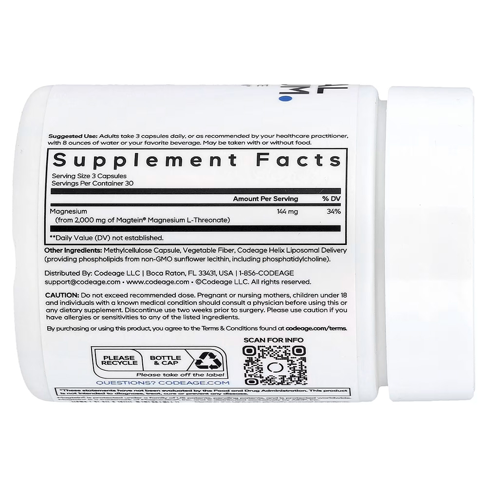 Codeage, липосомальный L-треонат магния, 90 растительных капсул