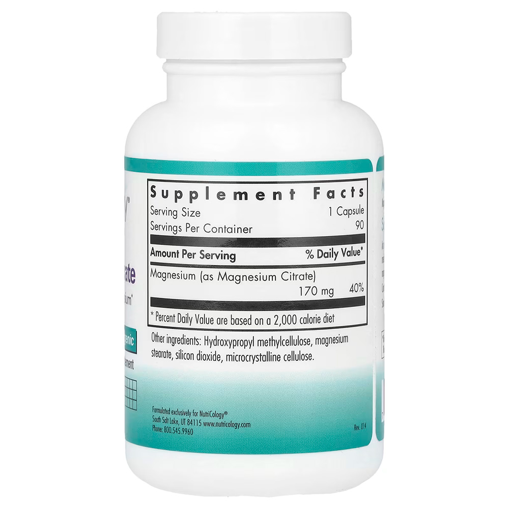 Nutricology, цитрат магния, 90 вегетарианских капсул (170 мг в 1 капсуле)