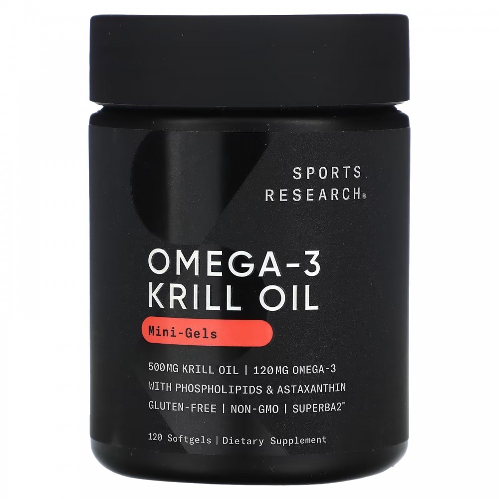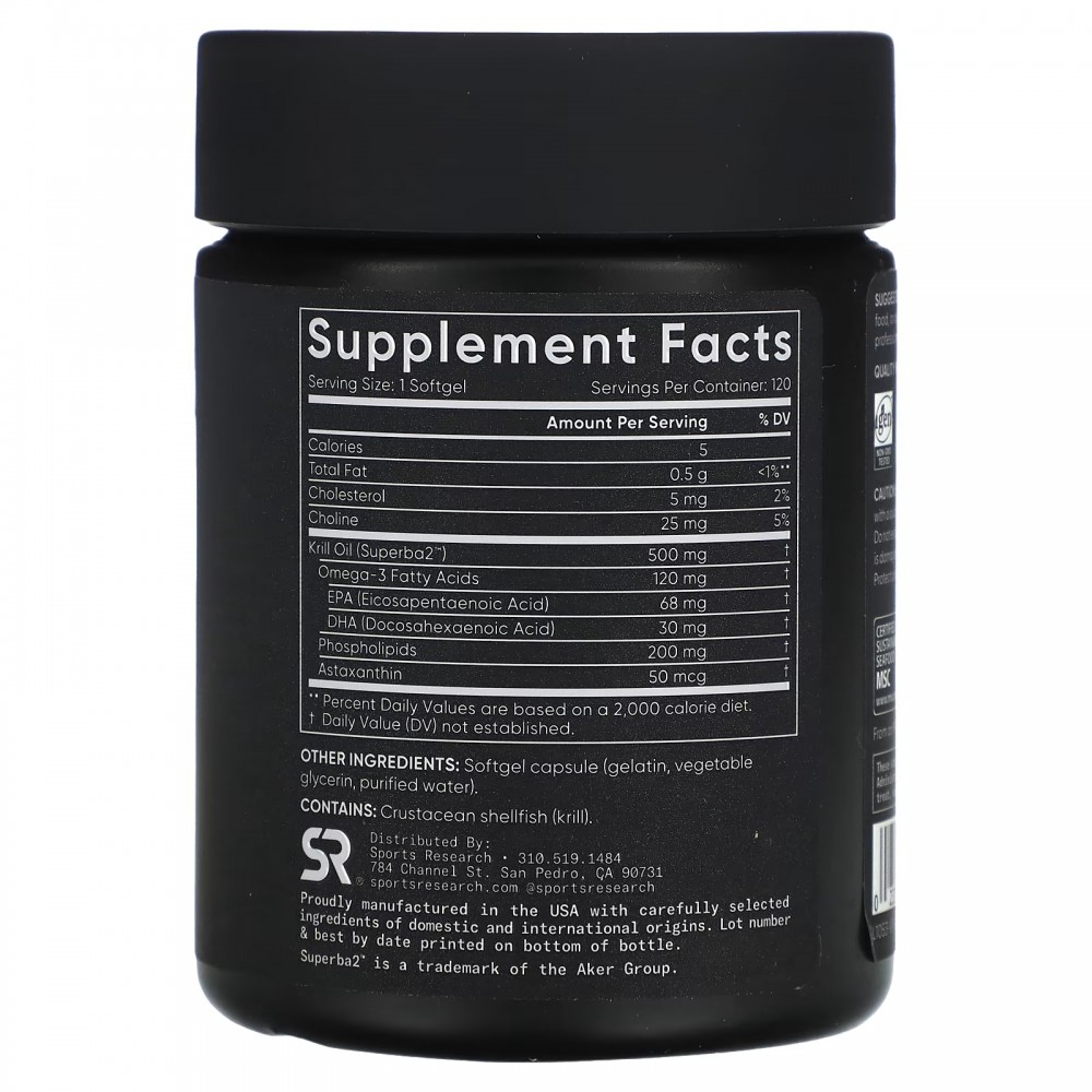 Sports Research, масло антарктического криля с астаксантином, 500 мг, 120 мягких таблеток