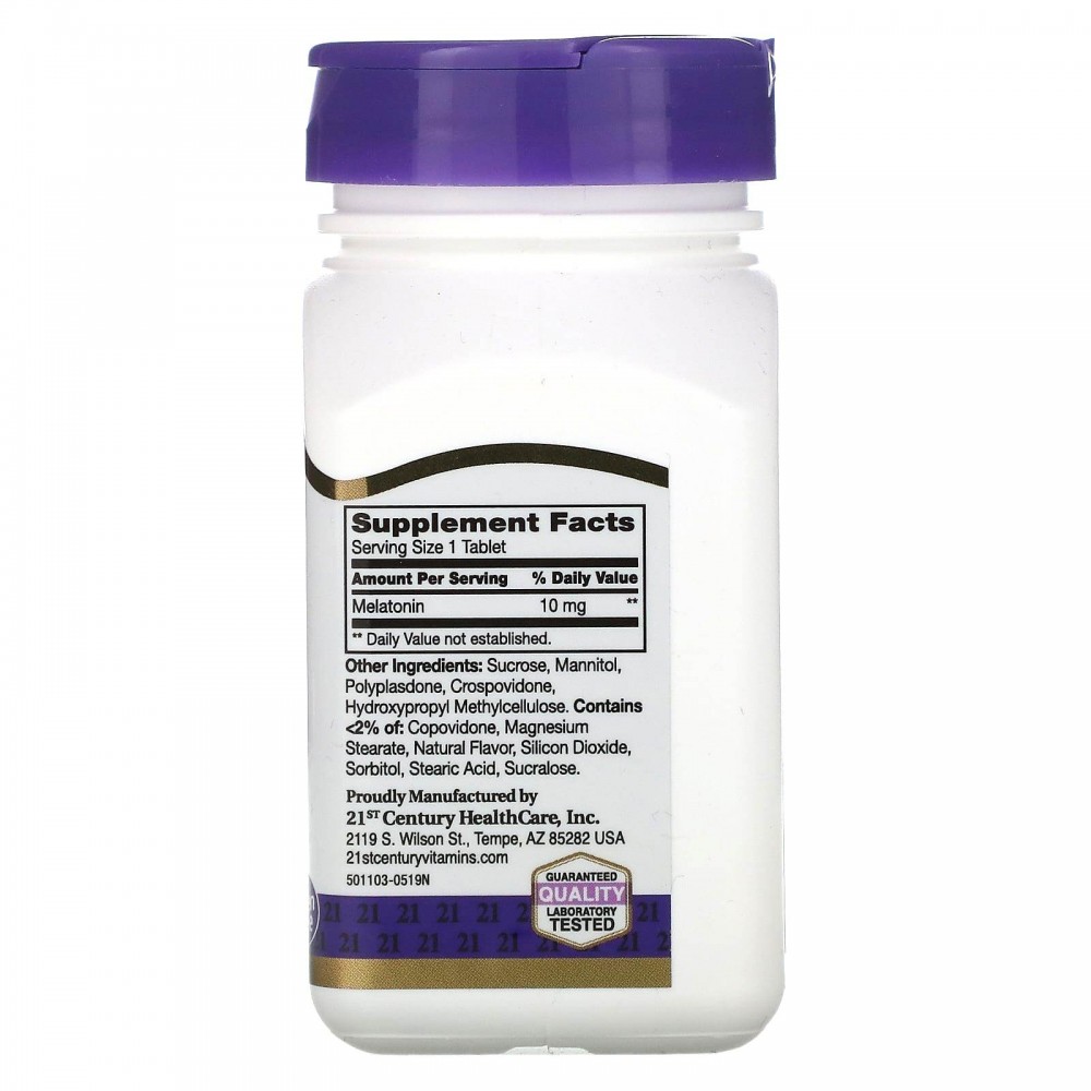 21st Century, Быстрорастворимый мелатонин, с вишневым вкусом, 10 мг, 120 таблеток: