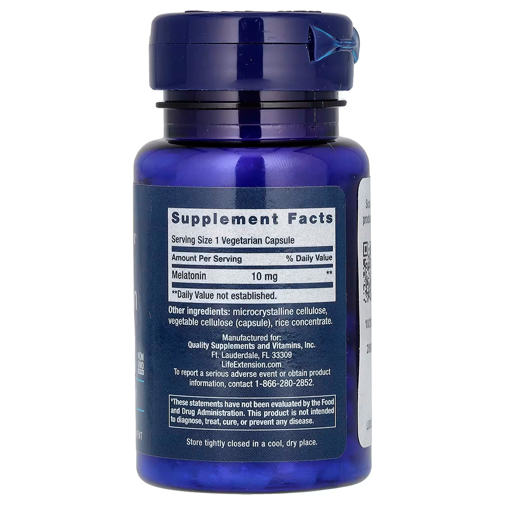 Life Extension, Мелатонин, 10 мг, 60 вегетарианских капсул