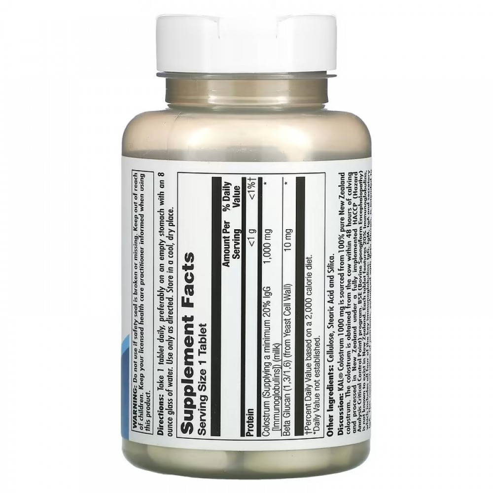 Описание. Молозиво KAL® (1000 мг) производится из 100% чистого новозеландского молозива. Молозиво получают от коровы в течение 48 часов после отела и обрабатывают в Новой Зеландии в соответствии с полностью внедренной программой HACCP (анализ рисков и критическая контрольная точка). Губчатая энцефалопатия крупного рогатого скота (Bovine Spongiform Encephalopathy) не встречается в Новой Зеландии. Каждая таблетка содержит 20% иммуноглобулинов, которые включают все четыре ключевых иммуноглобулина: IgG, IgM, IgA и секреторный IgA. Эта концентрация питательных веществ, усиленная бета-глюканом, предназначена для обеспечения питательной поддержки общего здоровья и хорошего самочувствия. Технология замедленного высвобождения позволяет организму усваивать то, что ему нужно для оптимальной поддержки питательных веществ.