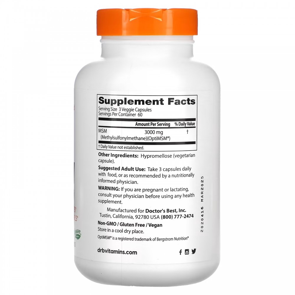 Doctor's Best, МСМ с OptiMSM, 1000 мг, 180 растительных капсул