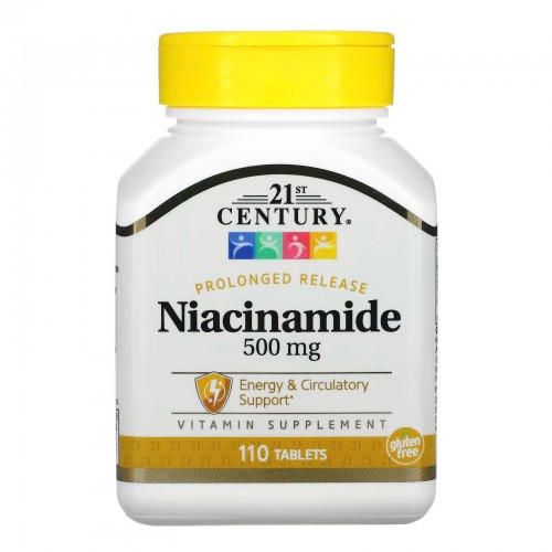 21st Century, никотинамид, замедленное высвобождение, 500 мг, 110 таблеток