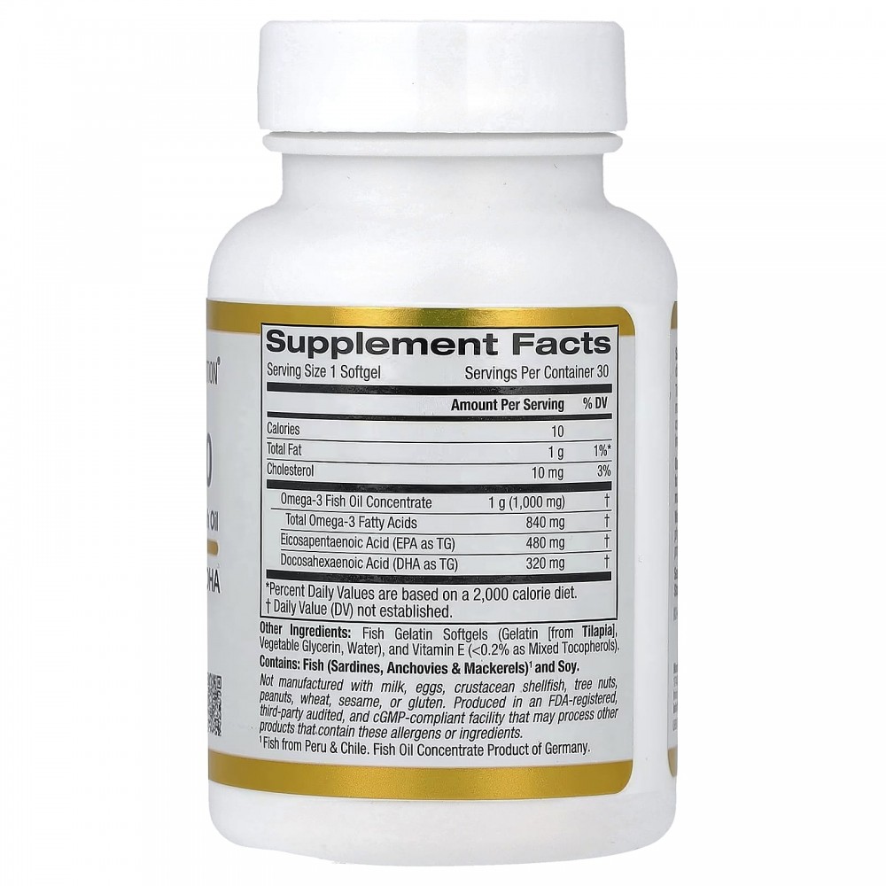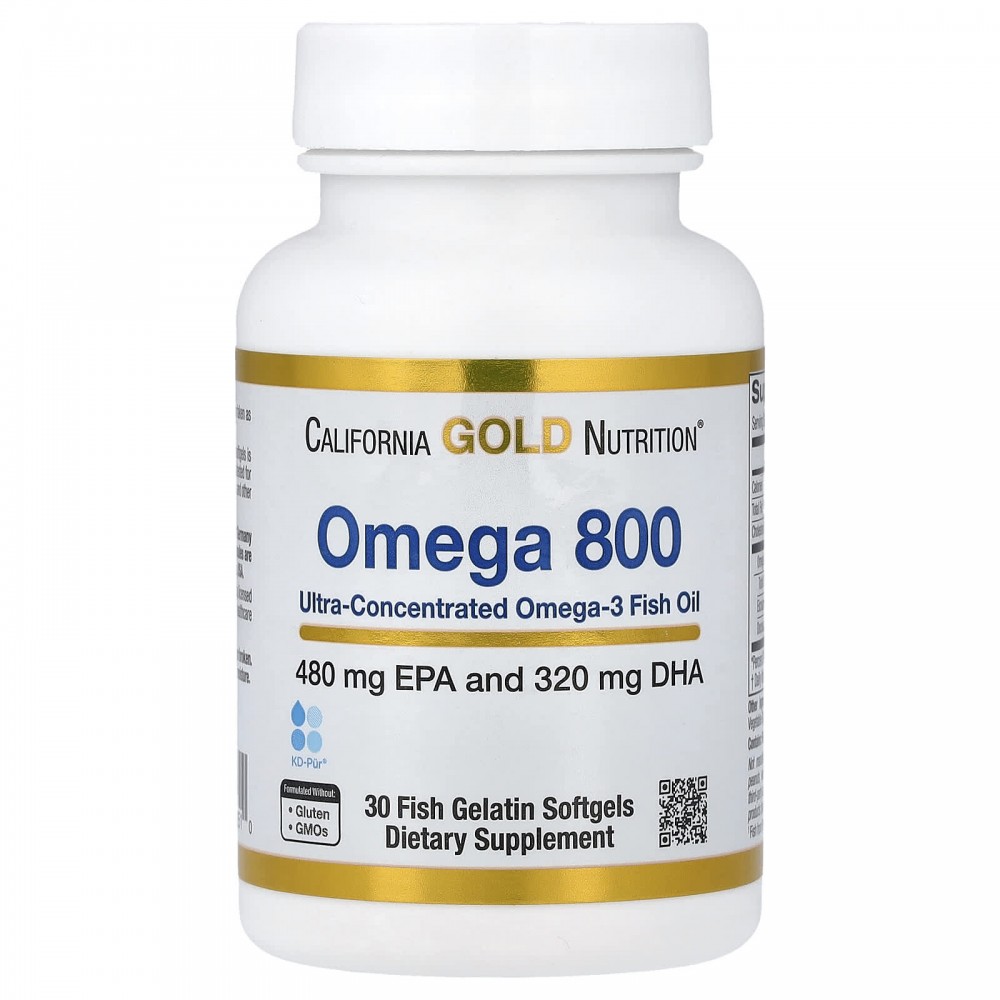 California Gold Nutrition производится исключительно из KD-PÜR® — ультра концентрированного рыбьего жира, произведенного в Германии и имеющего 5 звезд по рейтингу IFOS™. Это средство создано специально для тех, кто хочет получить сверхконцентрированную дозу, принимая одну капсулу в день. Каждая доза омега 800 содержит рыбий жир самого высокого качества с не менее чем 80% ЭПК и ДГК и предлагается по самой выгодной стоимости.