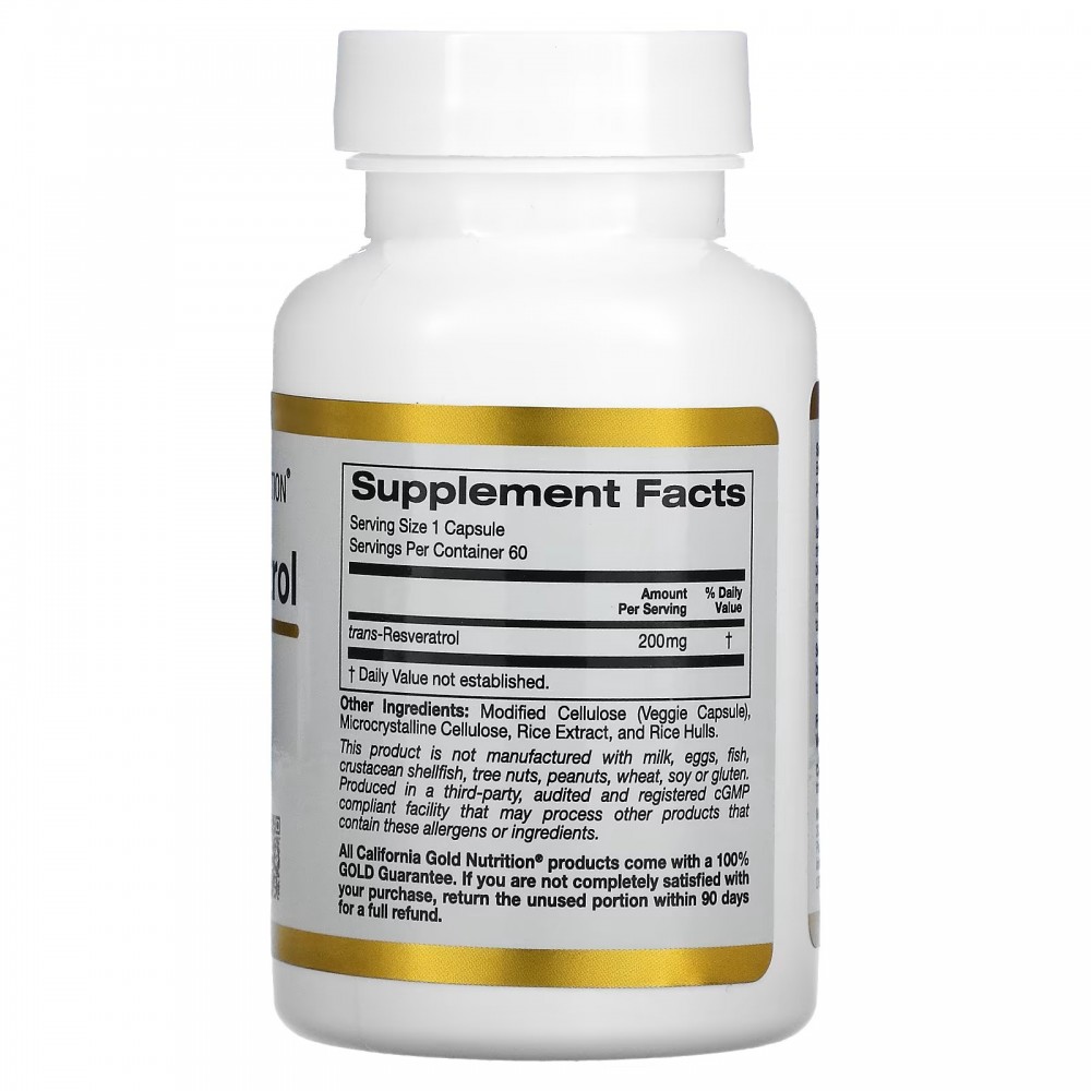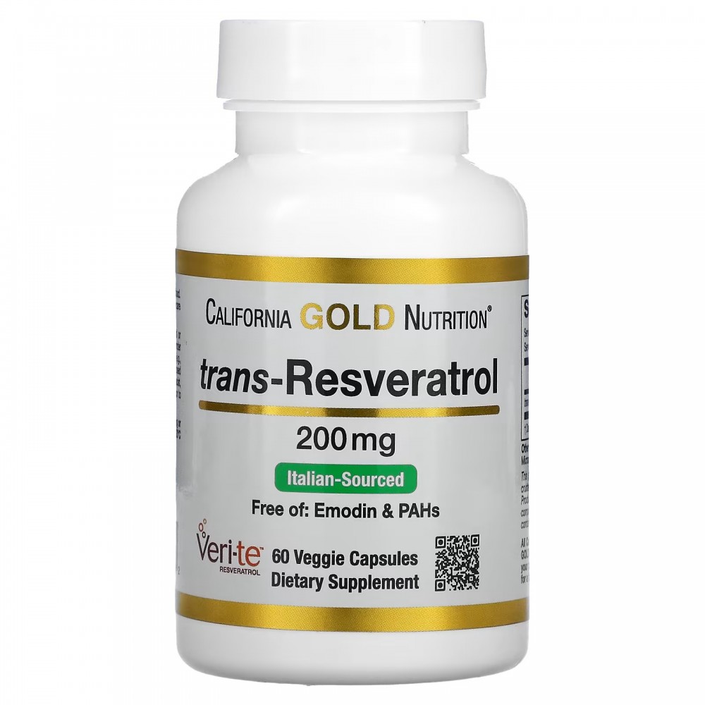 California Gold Nutrition, транс-ресвератрол, итальянского происхождения, 200 мг, 60 растительных капсул