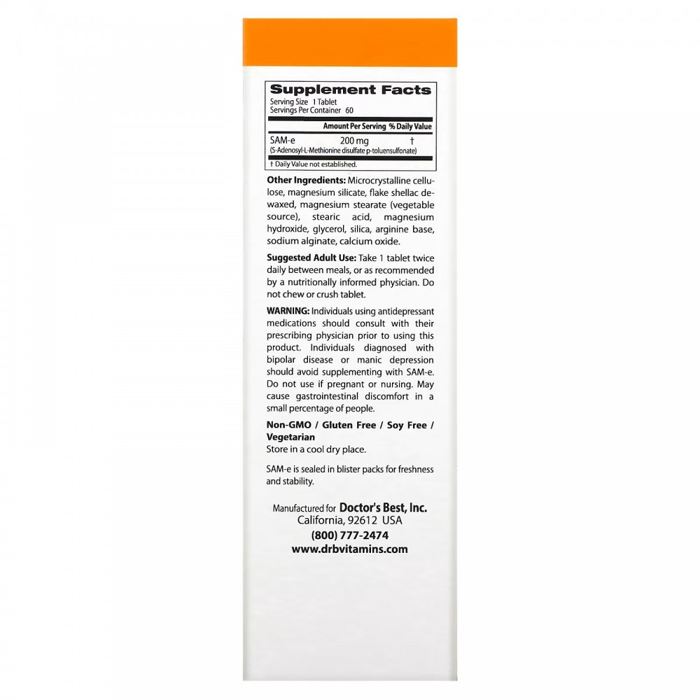 Doctor's Best, SAMe (дисульфат тозилат), 200 мг, 60 таблеток, покрытых кишечнорастворимой оболочкой