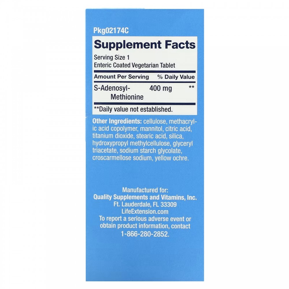 Life Extension, SAMe, S-аденозилметионин, 400 мг, 60 вегетарианских таблеток, покрытых кишечнорастворимой оболочкой