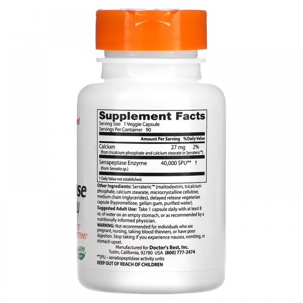 Doctor's Best, серрапептаза Best, 40 000 SPU, 90 вегетарианских капсул