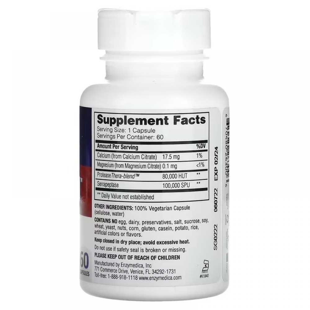 Enzymedica, SerraGold, высокоэффективная серрапептаза, 60 капсул