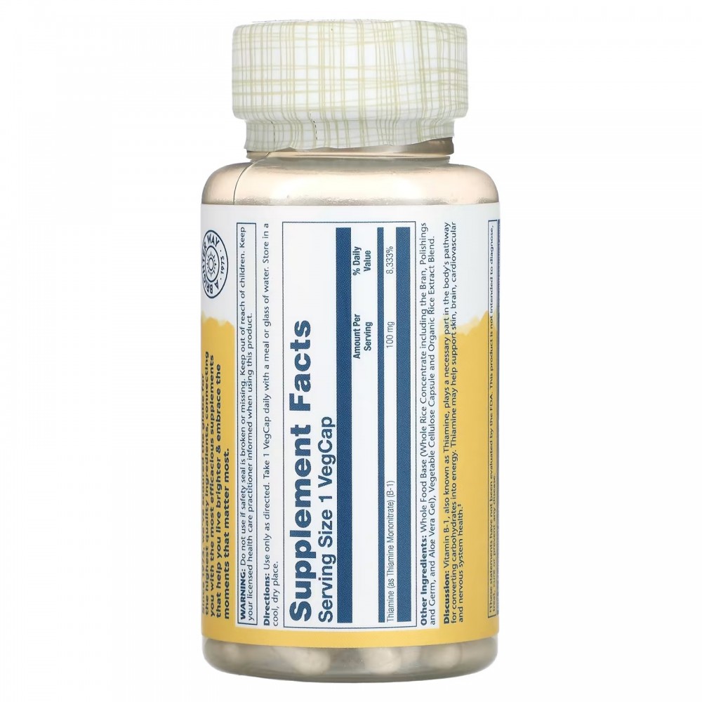 Solaray, витамин В1, 100 мг, 100 капсул VegCaps