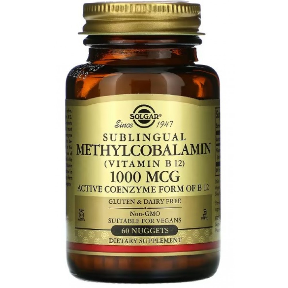 Solgar, сублингвальный метилкобаламин (витамин B12), 1000 мкг, 60 капсул