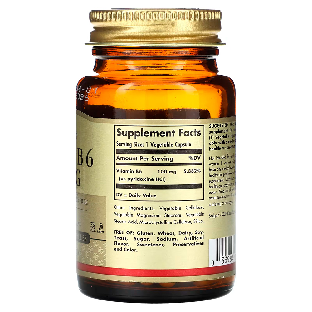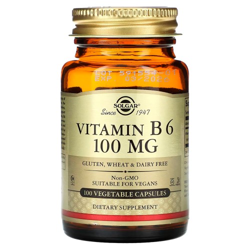 Solgar, Витамин B6, 100 мг, 100 растительных капсул