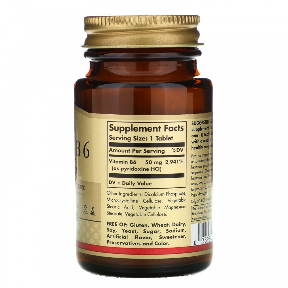 Solgar, Витамин В6, 50 мг, 100 таблеток