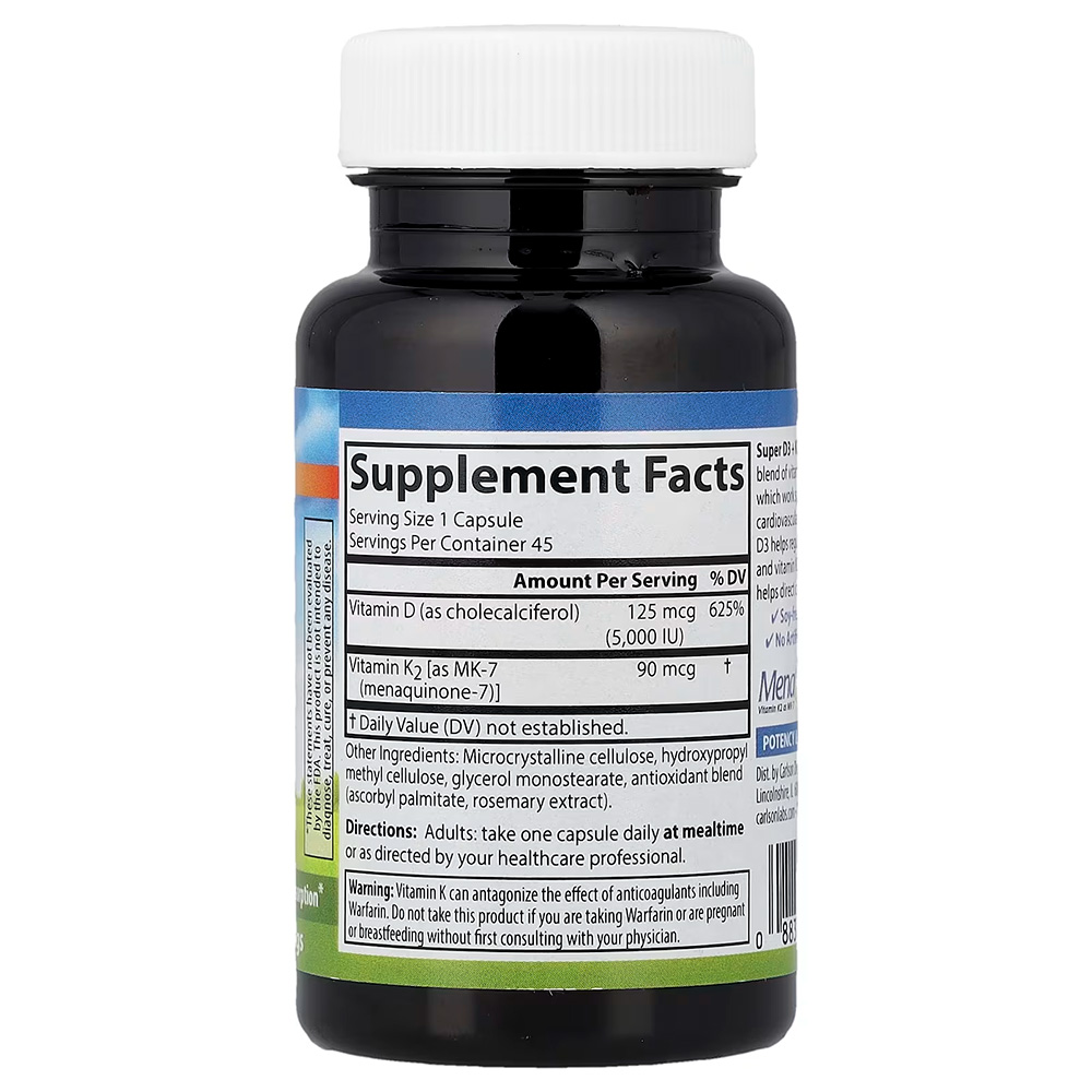 Carlson, Super D3 + K2`` 45 вегетарианских капсул