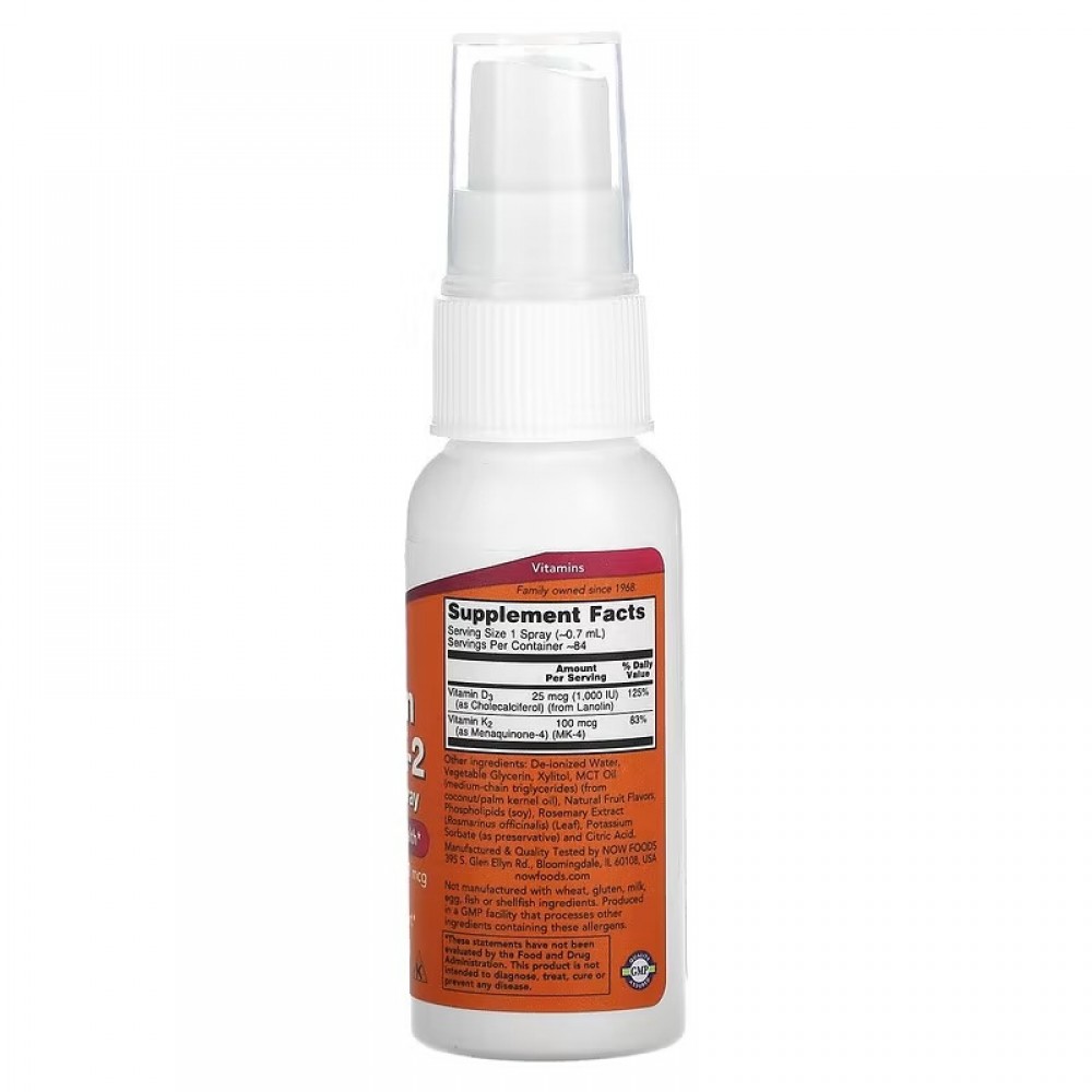NOW Foods, витамины D3 и K2, липосомный спрей, 59 мл (2 жидк. унции) (Товар снят с продажи)
