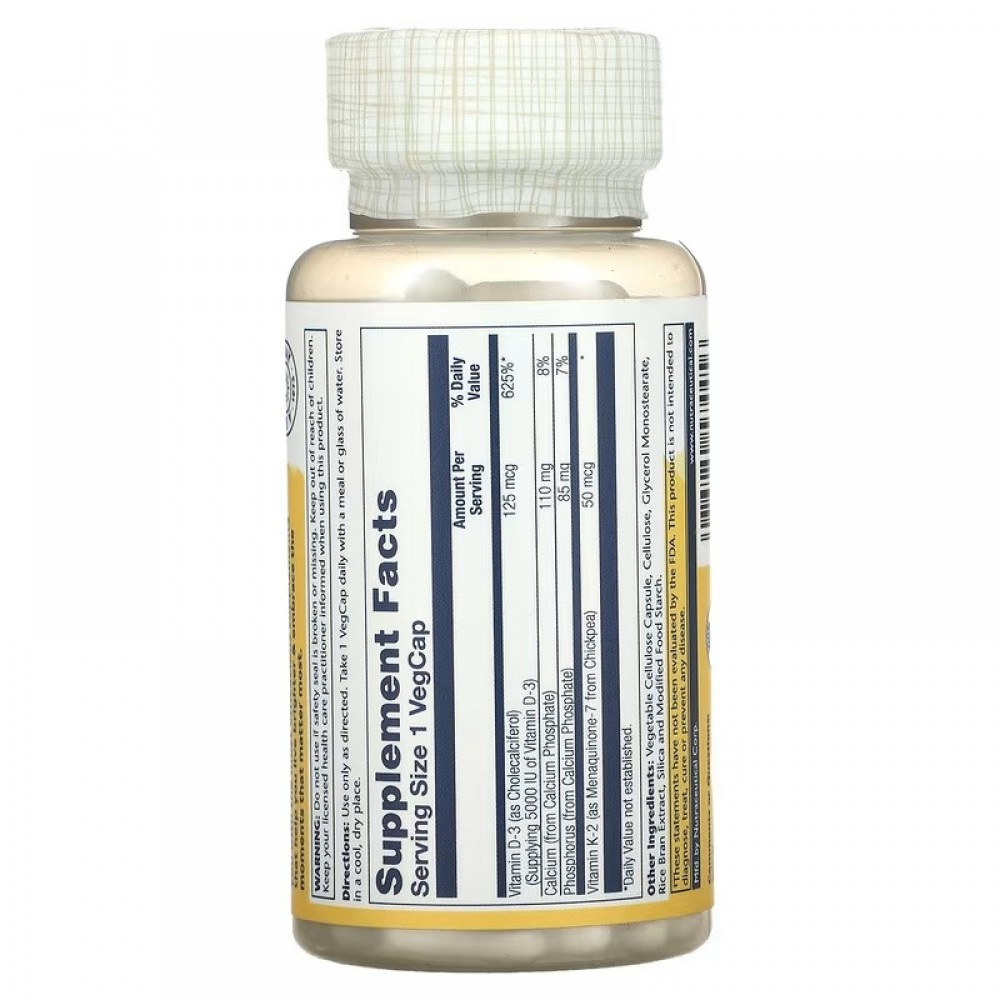 Описание. Эта формула сочетает в себе высокоэффективный природный источник D3 холекальциферола с клинически поддерживаемой порцией витамина K2 менахинона-7 (MK-7) из ферментированного нута. Эти витамины работают вместе, поддерживая здоровье костей и сердечно-сосудистой системы, а также поддерживая здоровый уровень кальция.