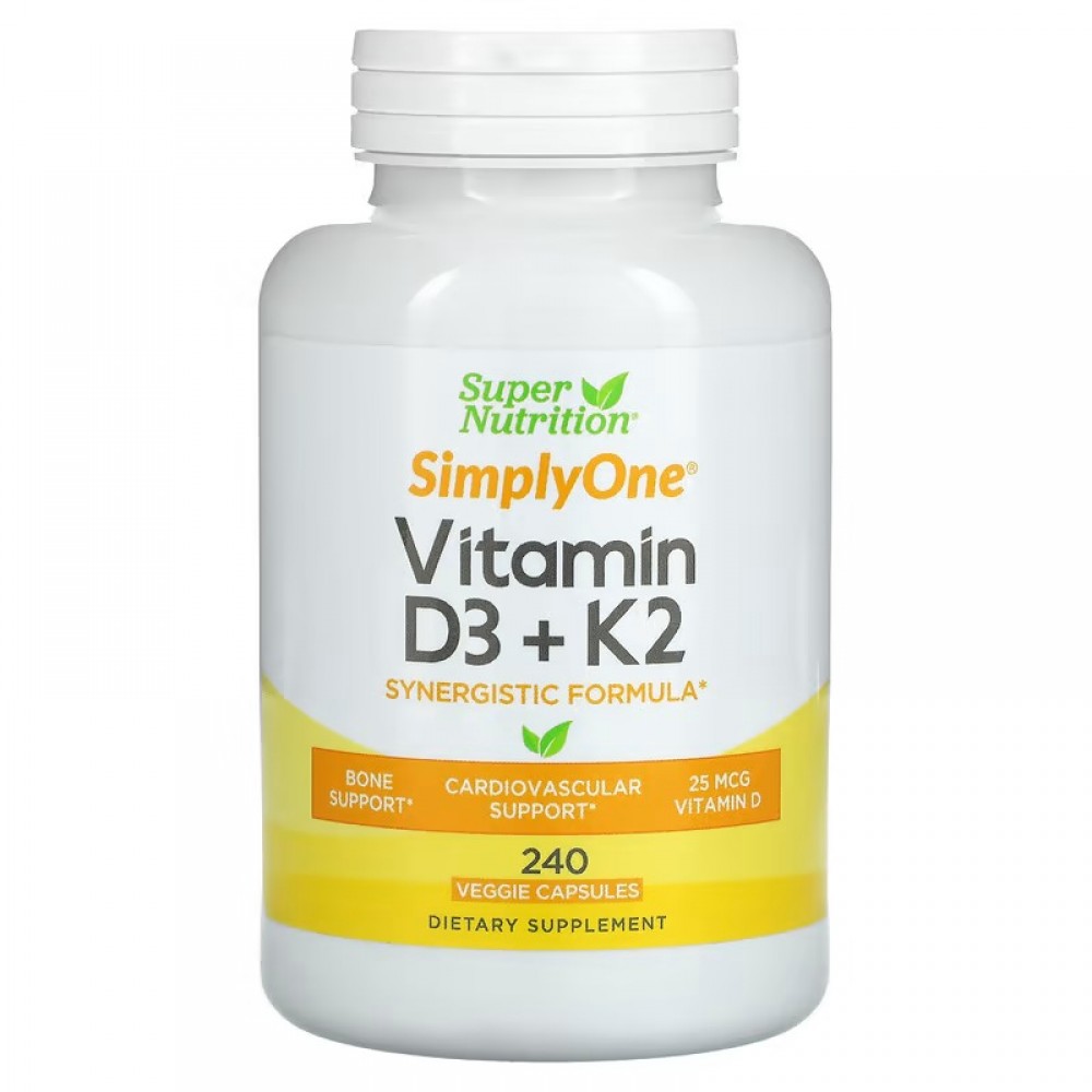 - Super Nutrition, SimplyOne, витамины D3 и K2, 240 растительных капсул