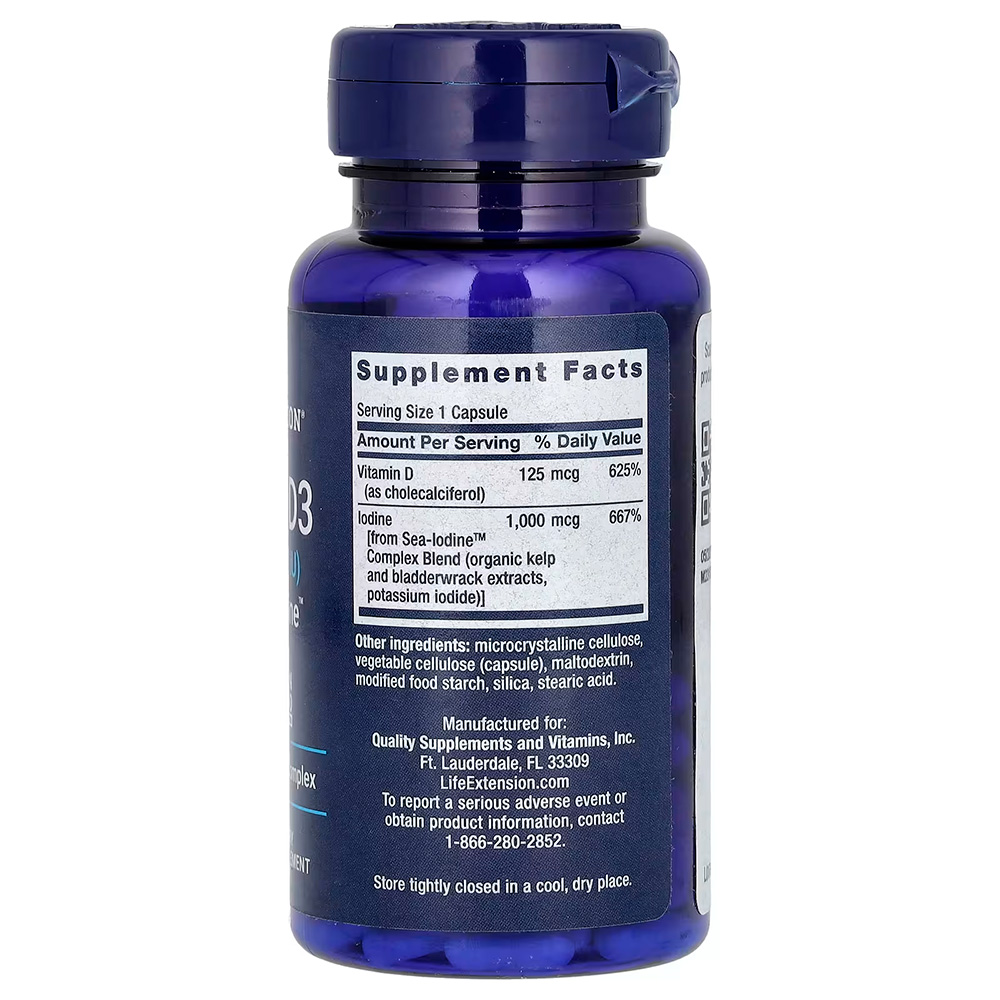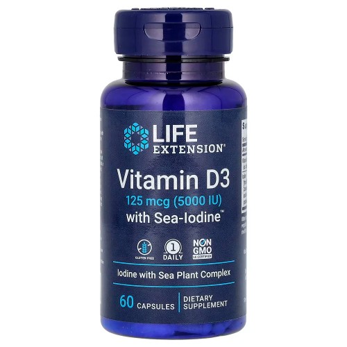 Life Extension, витамин D3 с Sea-Iodine, 125 мкг (5000 МЕ), 60 капсул