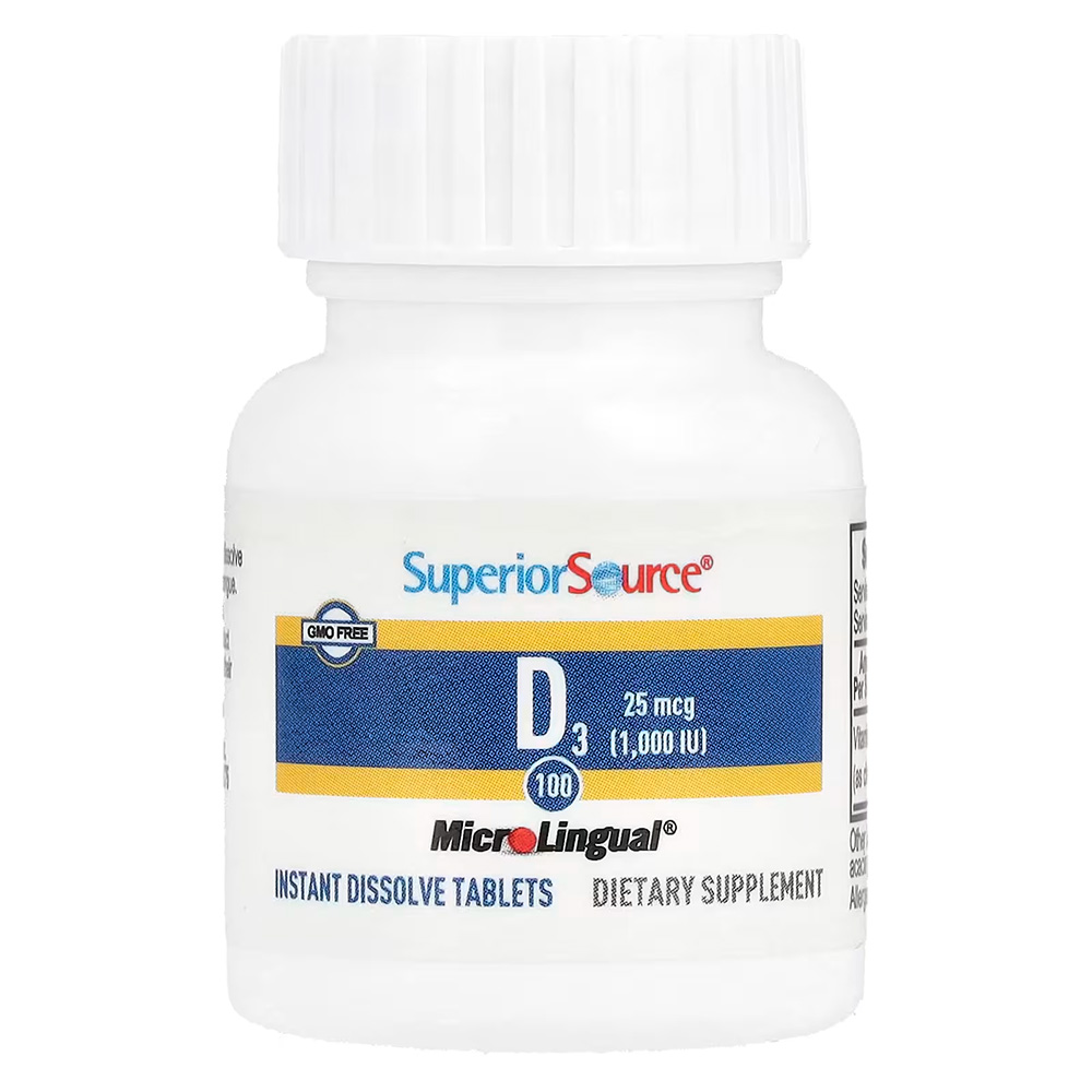 Superior Source, витамин D3, 25 мкг (1000 МЕ), 100 быстрорастворимых таблеток MicroLingual®