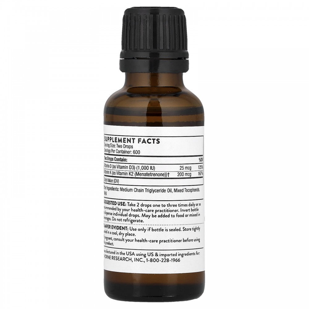 Thorne Research, витамины D и K2, 25 мкг (1000 МЕ), 30 мл