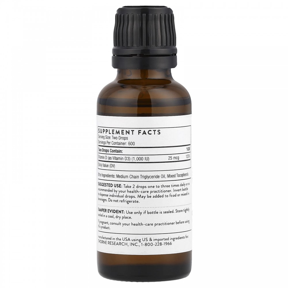 Thorne Research, витамин D, 25 мкг (1000 МЕ), 30 мл