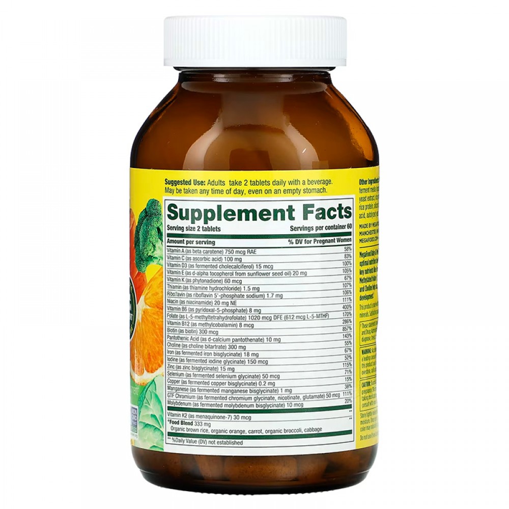 Baby&Me 2 Prenatal Multi от MegaFood поддерживает оптимальное питание до и во время беременности за счет определенных уровней железа, витаминов B12, B6 и D3. Холин и метилированный фолат (активная форма фолиевой кислоты) помогают поддерживать здоровье плода.