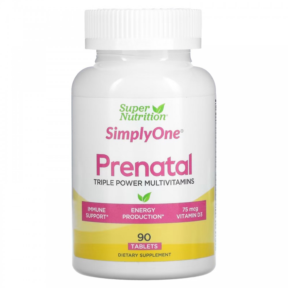 Super Nutrition, Simply One, пренатальные мультивитамины тройного действия, 90 таблеток