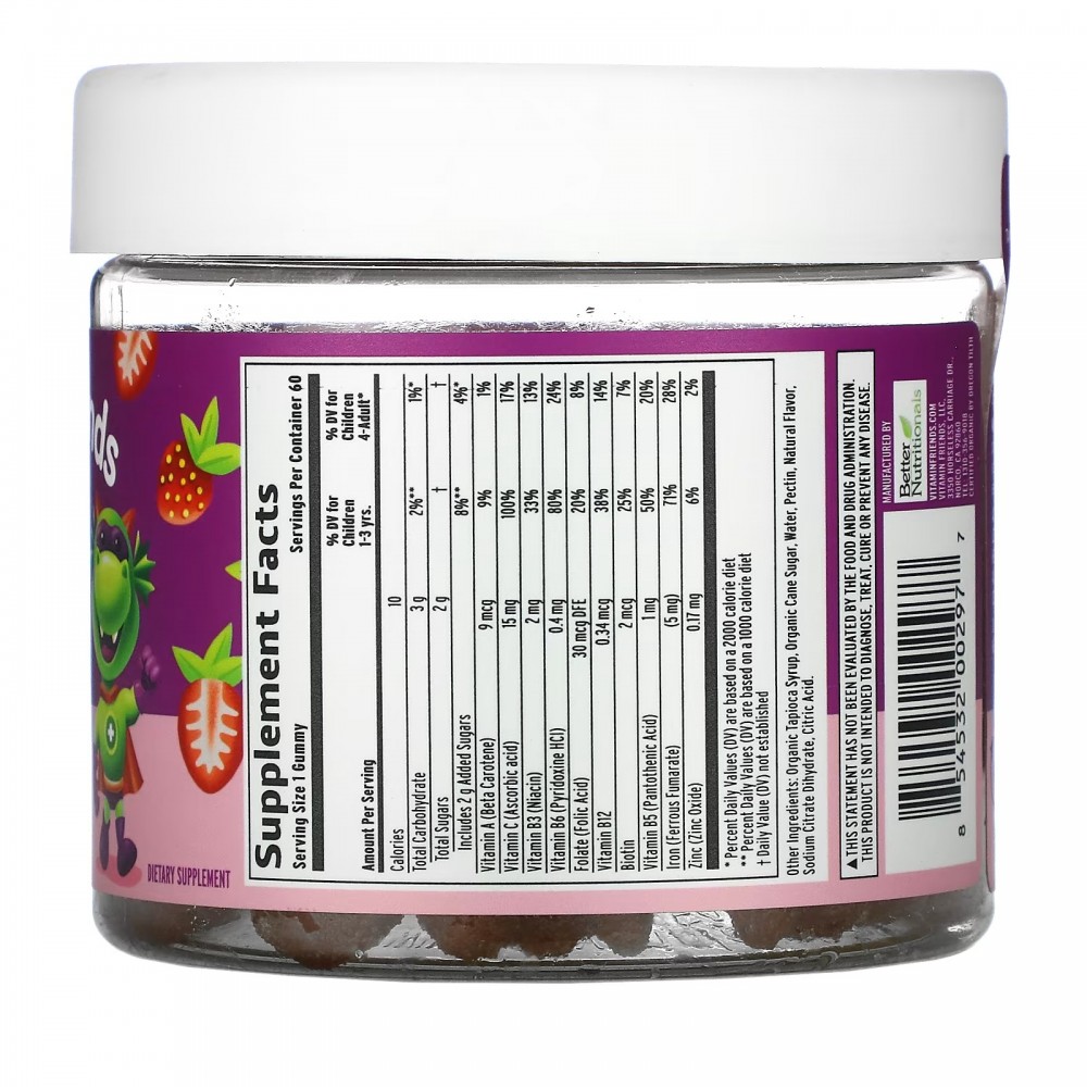 Vitamin Friends, веганские жевательные таблетки с железом, со вкусом клубники, 60 жевательных таблеток с пектином