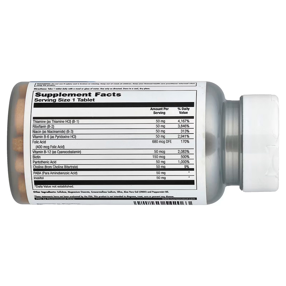 Витамины группы B поддерживают множество биологических функций: от выработки энергии до иммунитета. Существует восемь различных витаминов группы B: B1 (тиамин) B2 (рибофлавин) В3 (ниацин) В5 (пантотеновая кислота) B6 (пиридоксин) витамин B7 (биотин) витамин B9 (фолат) витамин B12 (цианокобаламин). Каждый витамин играет важную роль в таких функциях, как выработка гормонов, метаболизм, создание клеток крови и многое другое. Комплекс B-50 сочетает в себе эти незаменимые витамины группы B в удобной таблетке. Всего одна таблетка комплекса B50 имеет множество полезных свойств. Каждая таблетка имеет оболочку Aroma Smooth™, обеспечивающую мятный свежий вкус.