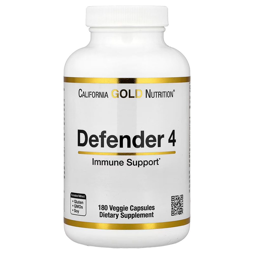 California Gold Nutrition, Defender 4, добавка с витаминами C и D, цинком и селеном, 180 вегетарианских капсул